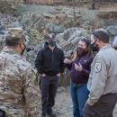 Tamara Gallentine, natural and cultural resources program manager for Beale Air Force Base, discusses details of the Dry Creek restoration project with Master Sgt. Jayson Wells of the Air Force’s 9th Civil Engineer Squadron and Jeff McLain and Paul Cadrett, right, of the U.S. Fish and Wildlife Service.