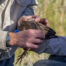A Yuma Ridgway's rail is fitted with a telemetry backpack. Credit: USFWS