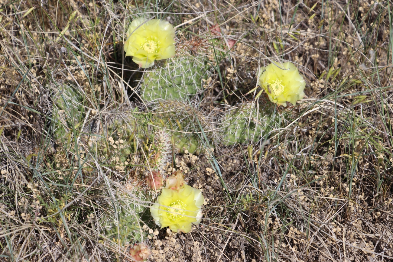 Prickly pear cacti flowering at Hailstone Waterfowl Production Area next to Hailstone National Wildlife Refuge are common in ealy summer. Prickly pear cactuses are prevalent on both the Refuge and WPA and provide important sources of nectar and pollen for bees and other insects in late June. Photo by Cortez Rohr/USFWS
