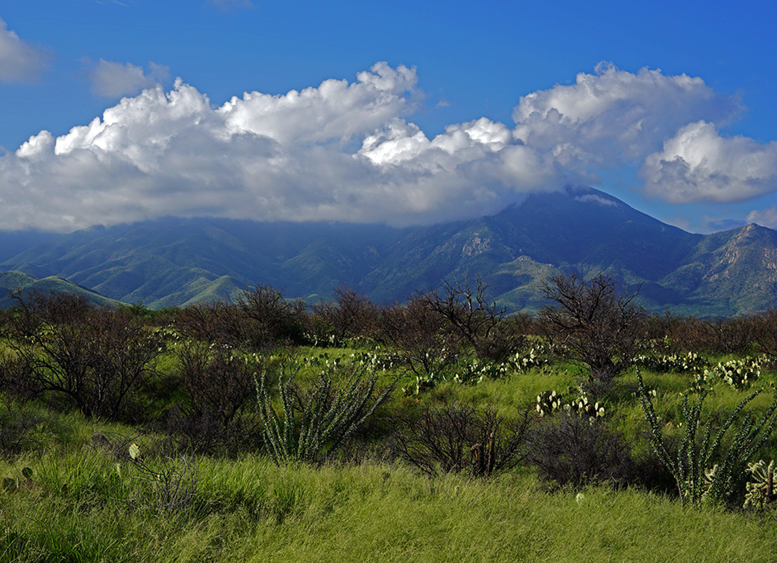 Looking south across study area towards the Santa Rita Mountains, approximately 1.5 months following herbicide treatment.