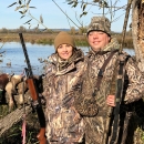 Jennifer and Doug Hawkins pose with their shotguns and a mixed bag of waterfowl after a hunt at Ridgefield National Wildlife Refuge in Washington state.