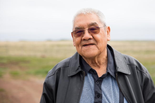 Unangax elder Greg Fratis, Sr. on St. Paul Island in Alaska Maritime National Wildlife Refuge during the 75th Anniversary of the Aleut Evacuation in 2021.