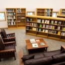 View of seating and bookshelves at the USFWS Library, NCTC.