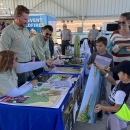 U.S. Forest Service personnel hand out souvenirs to young visitors during Aviation Nation at Nellis Air Force Base near Las Vegas, Nevada.