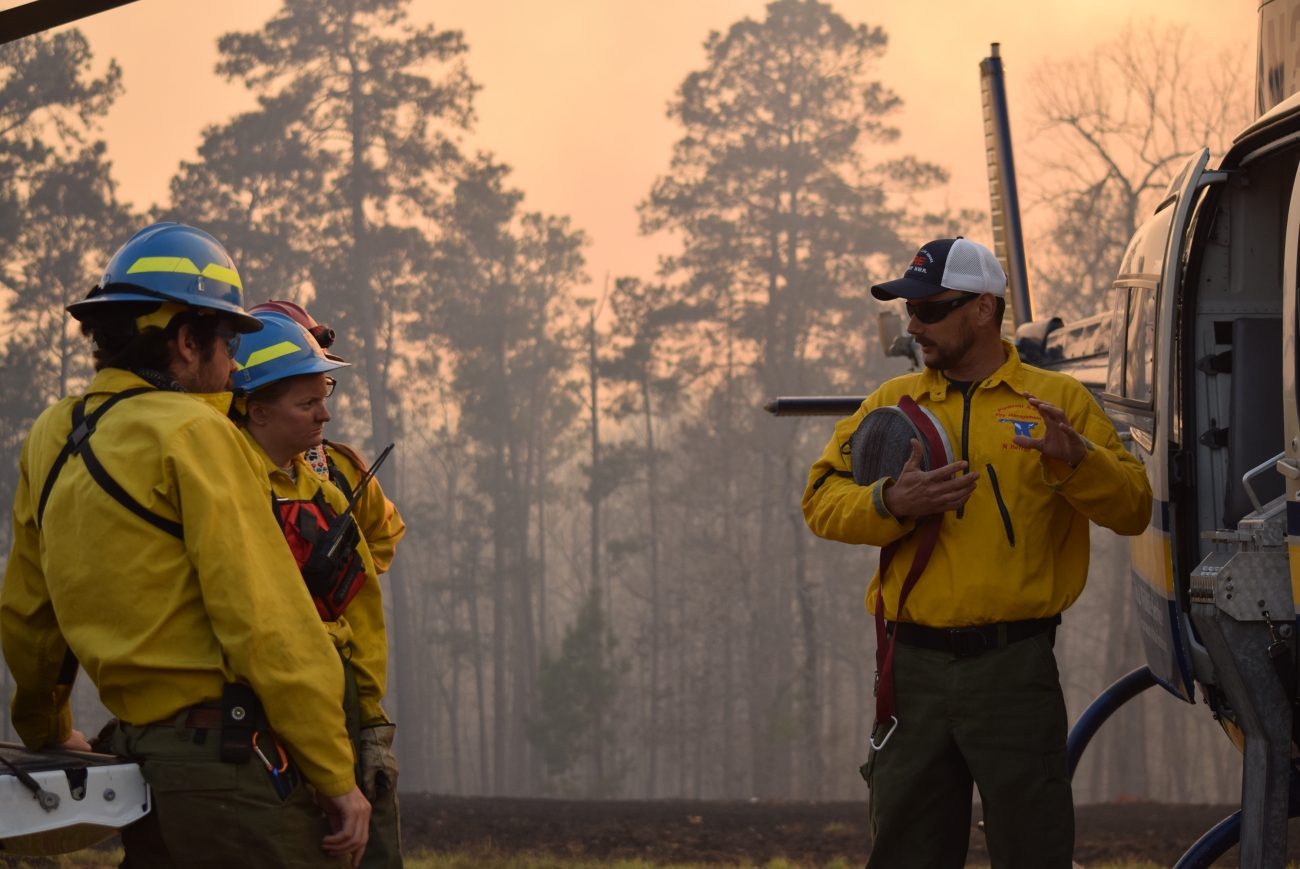USFWS firefighters discuss operations while on a suppression assignment