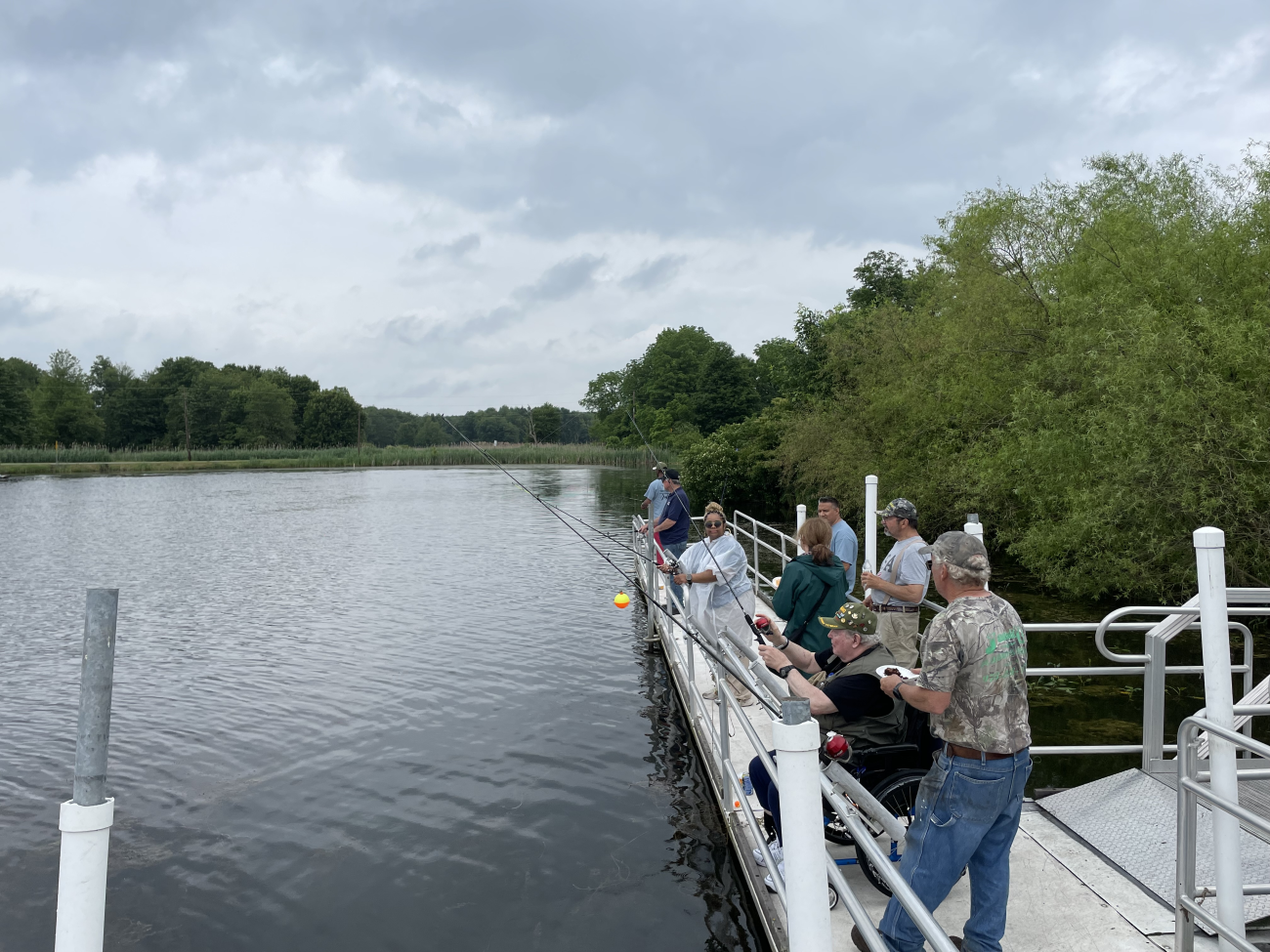 Veterans fishing off the fishing pier during the Veterans' Fishing Derby at Wallkill River National Wildlife Refuge