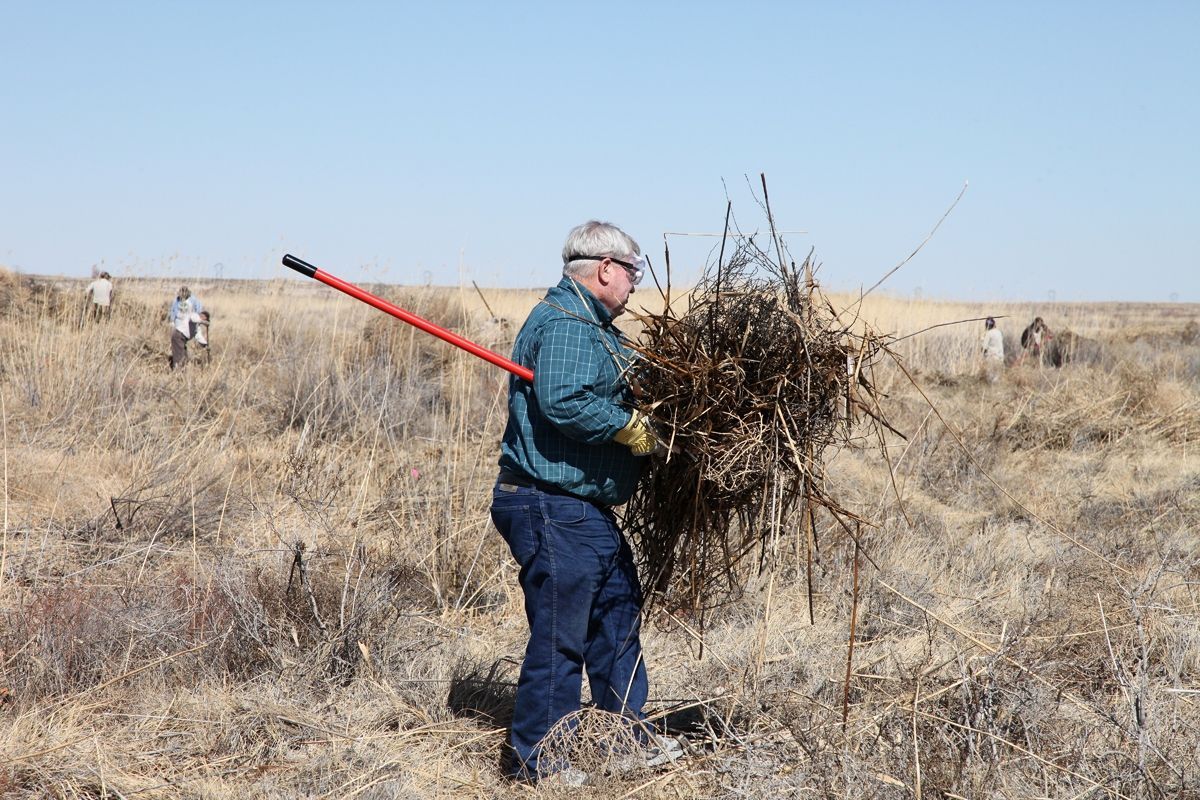 Refuge volunteer Jim Montgomery removes invasive phragmites from Bitter Lake National Wildlife Refuge in New Mexico.