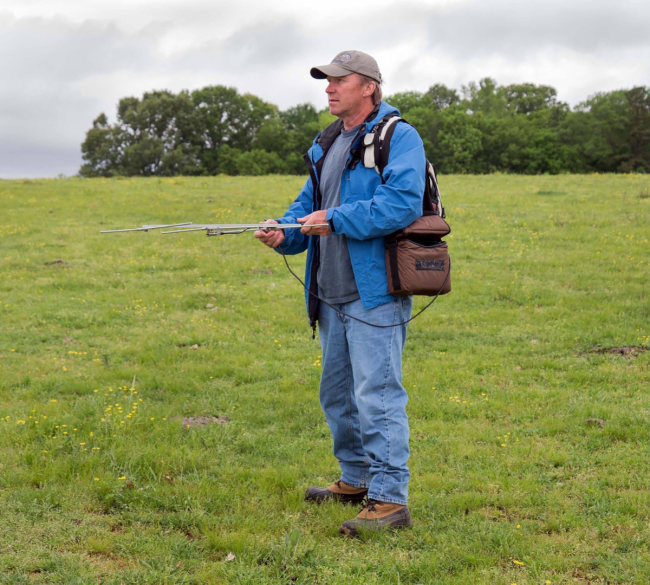 Volunteer Tom Ress using radio telemetry to track cranes. Photo courtesy of Tom Ress.