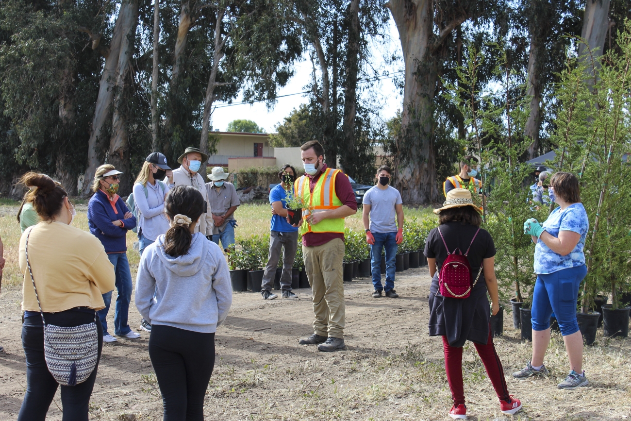 Andy Spyrka, the project manager and leader from the Ventura County Resource Conservation District, explains the proper planting techniques to a group of volunteers. Credit: Mary Teague/USFWS