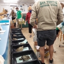 Volunteers at the Texas Sealife Center assist with processing juvenile Kemp’s ridley sea turtles flown from Massachusetts to Texas by Turtles Fly Too for rehabilitation.