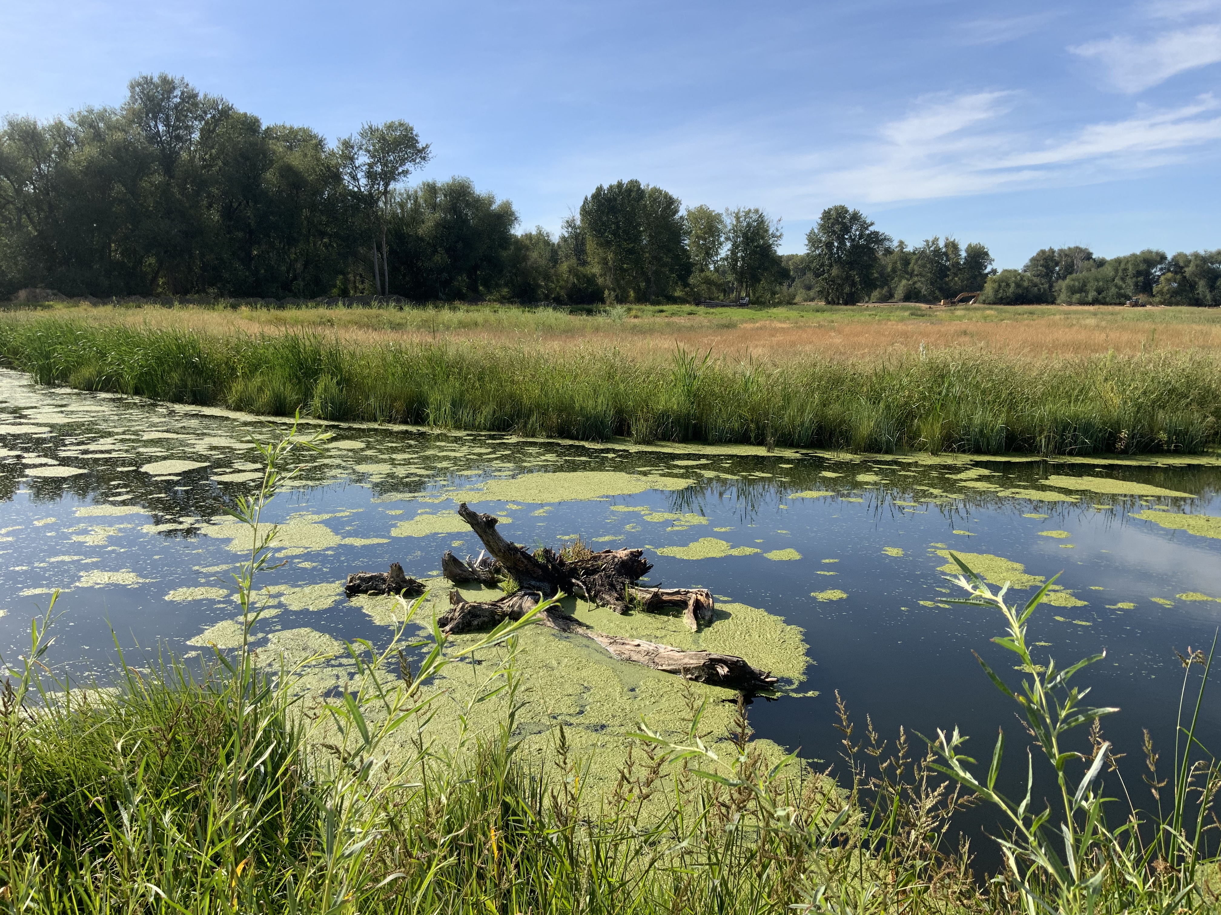 Results one year after restoration showing extensive waterfowl habitat and growth of wetland sod and willows.