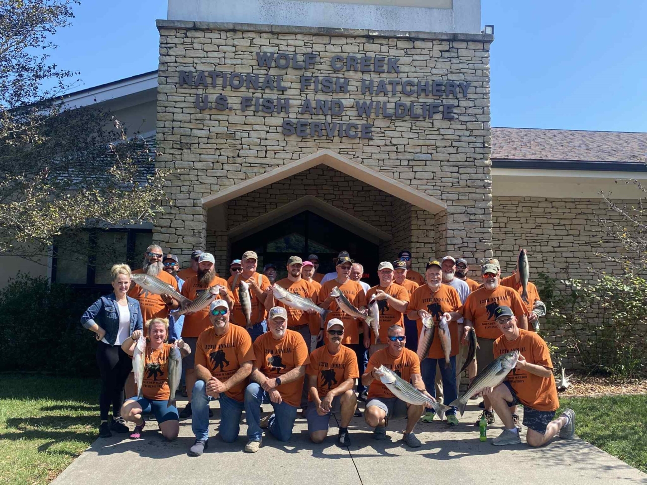 Participants of the 12th Annual Wounded Warrior Fishing Event holding their catches of the day.