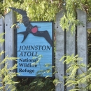 A sign that reads Welcome to Johnston Atoll National Wildlife Refuge that sits on Johnston Atoll is slowly being taken over by nature, May 24, 2021.