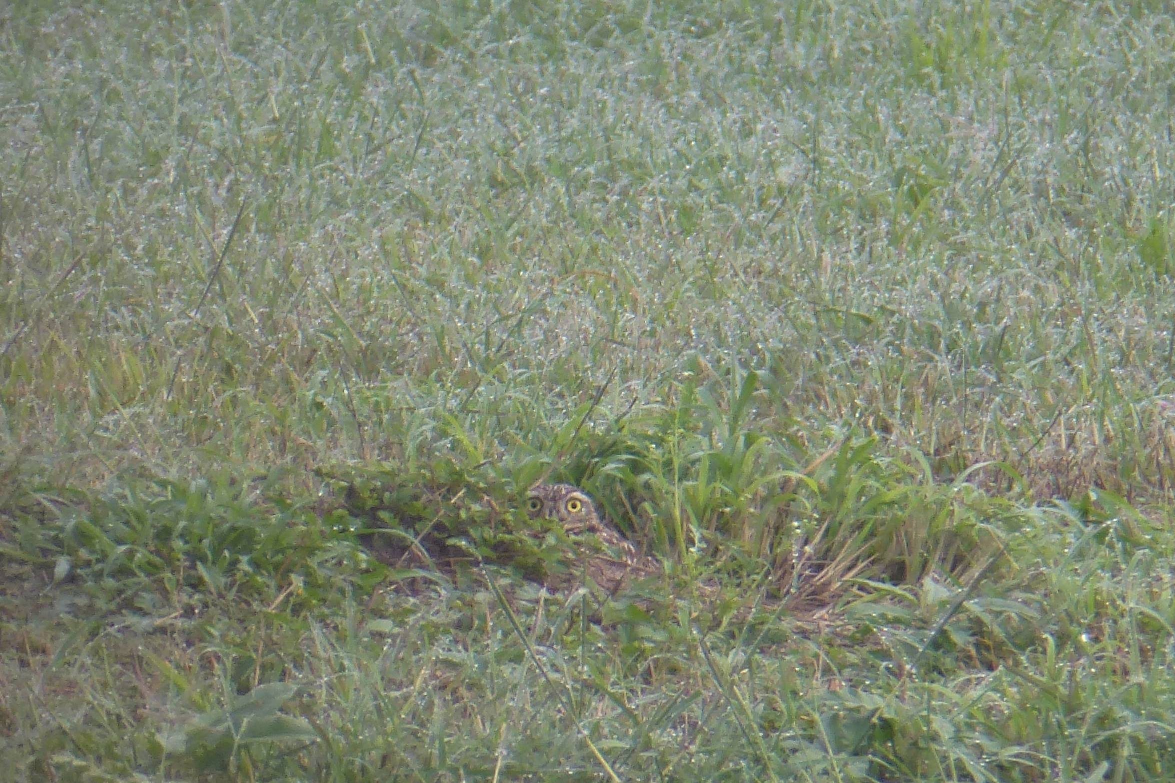 A Western burrowing owl peeks its head out from an artificial burrow in Nueces County, Texas. Image by Mary Kay Skoruppa/USFWS.