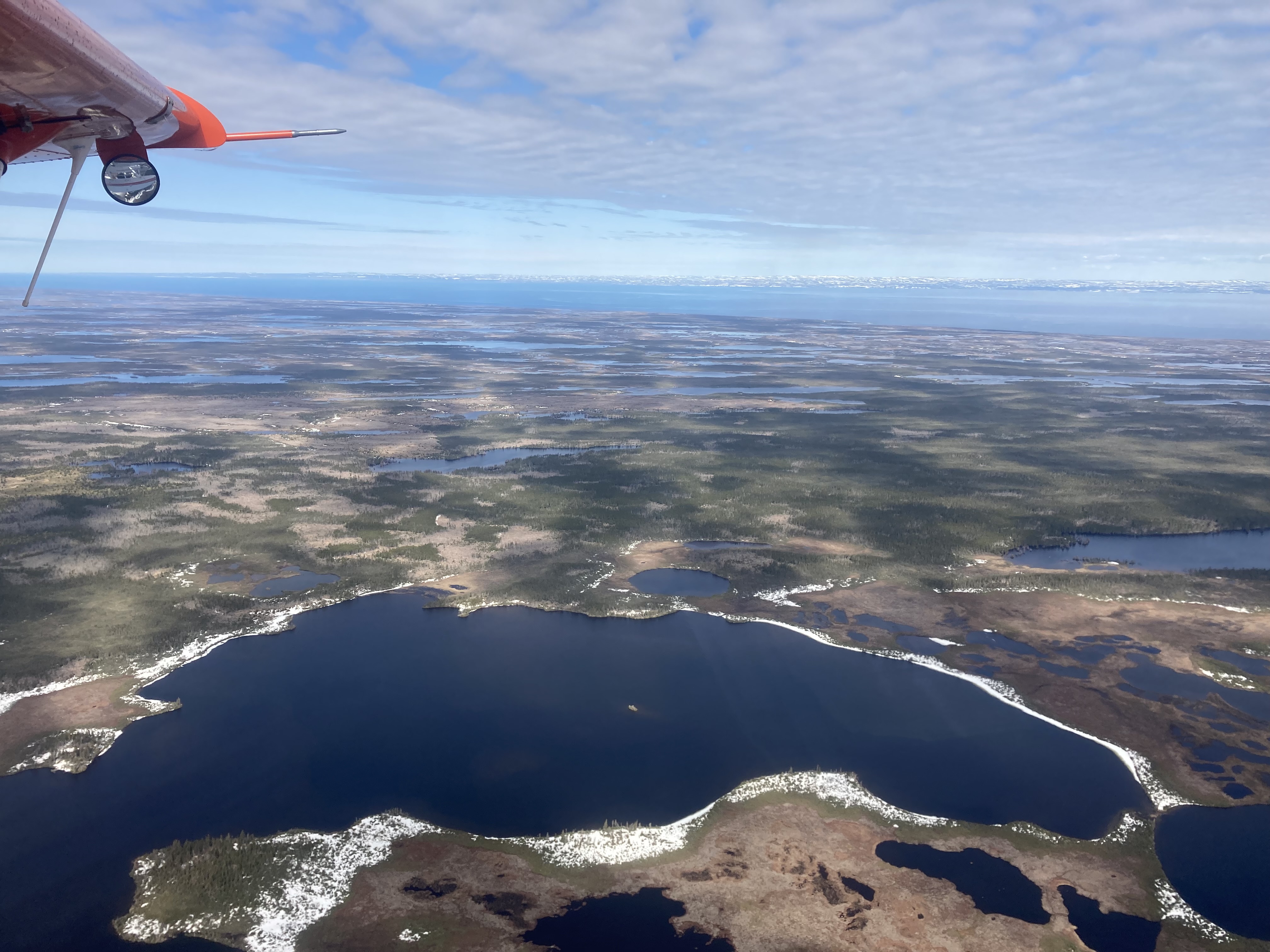 Lakes and wetlands at the northern extreme of Newfoundland. Quebec and Labrador can be seen in the distance across the Strait of Belle Isle. This picture was taken as part of the Waterfowl Breeding Population and Habitat Survey.