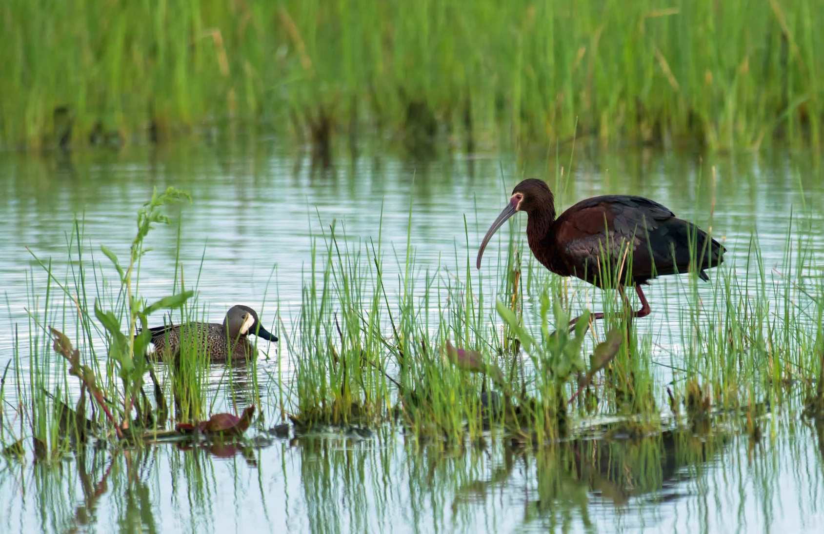 White Faced Ibis and Blue Wing Teal