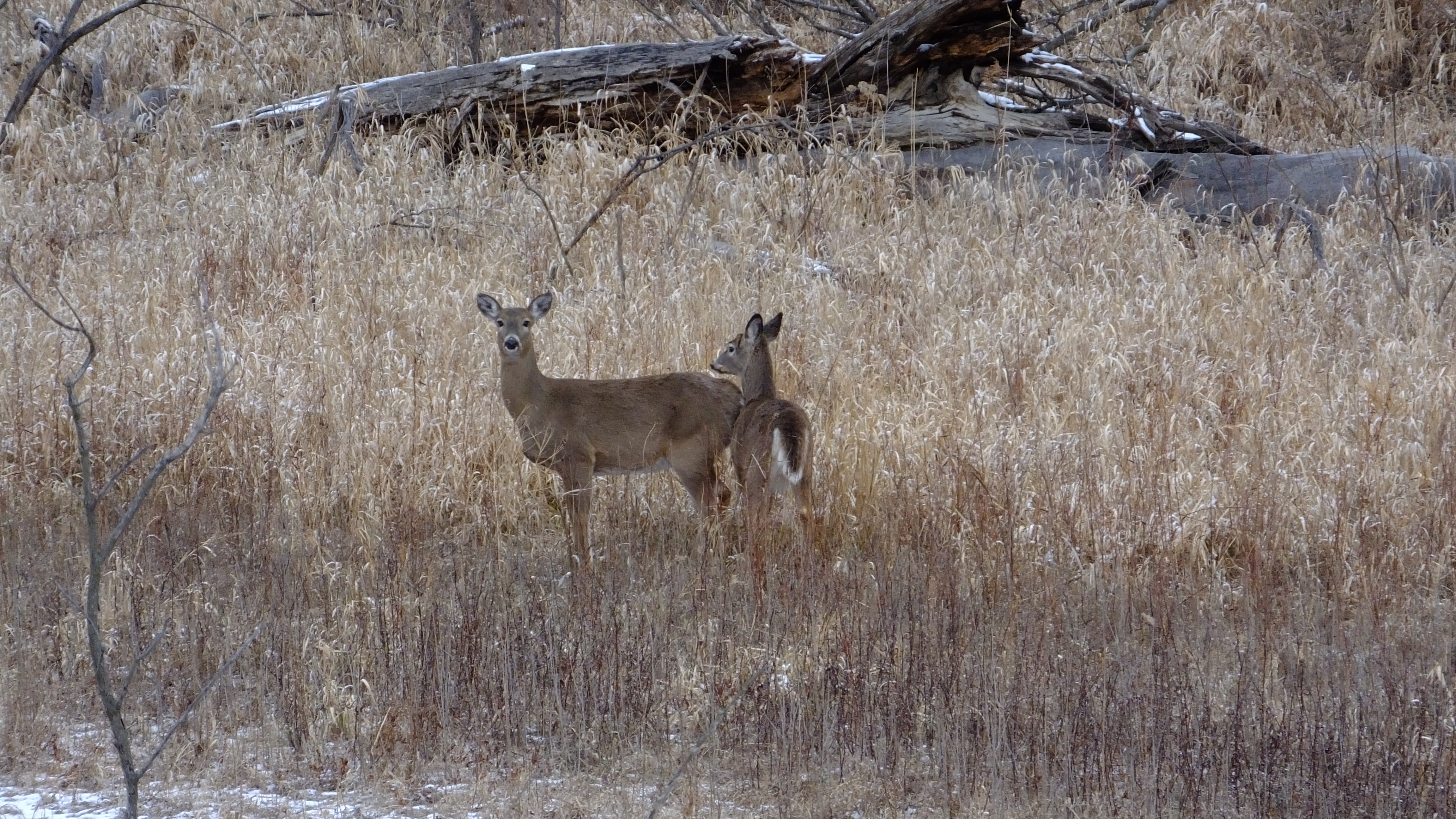 White-tailed deer in a field.