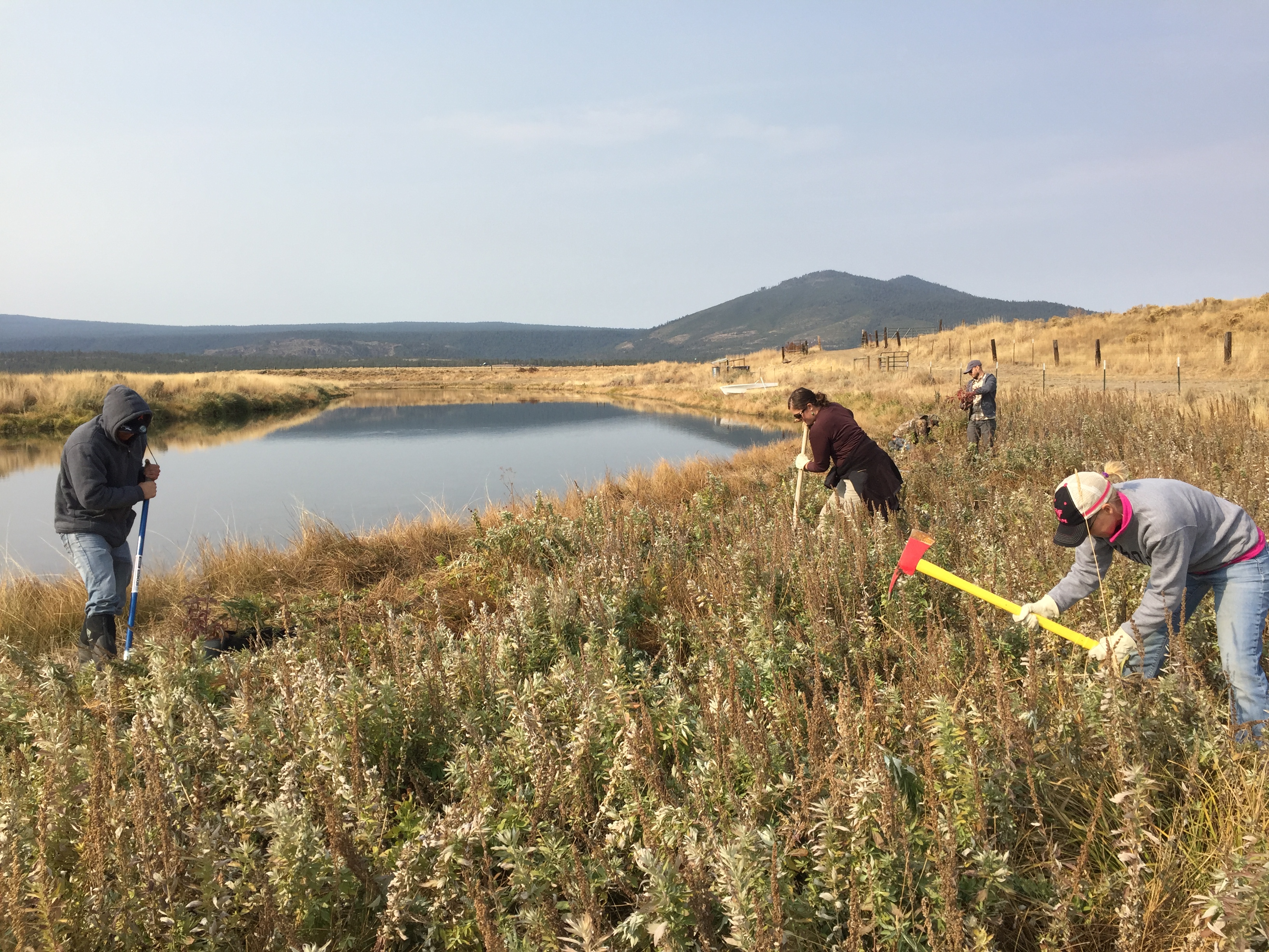 Stakeholders and volunteers help plant native species along the Williamson River as part of a restoration project.