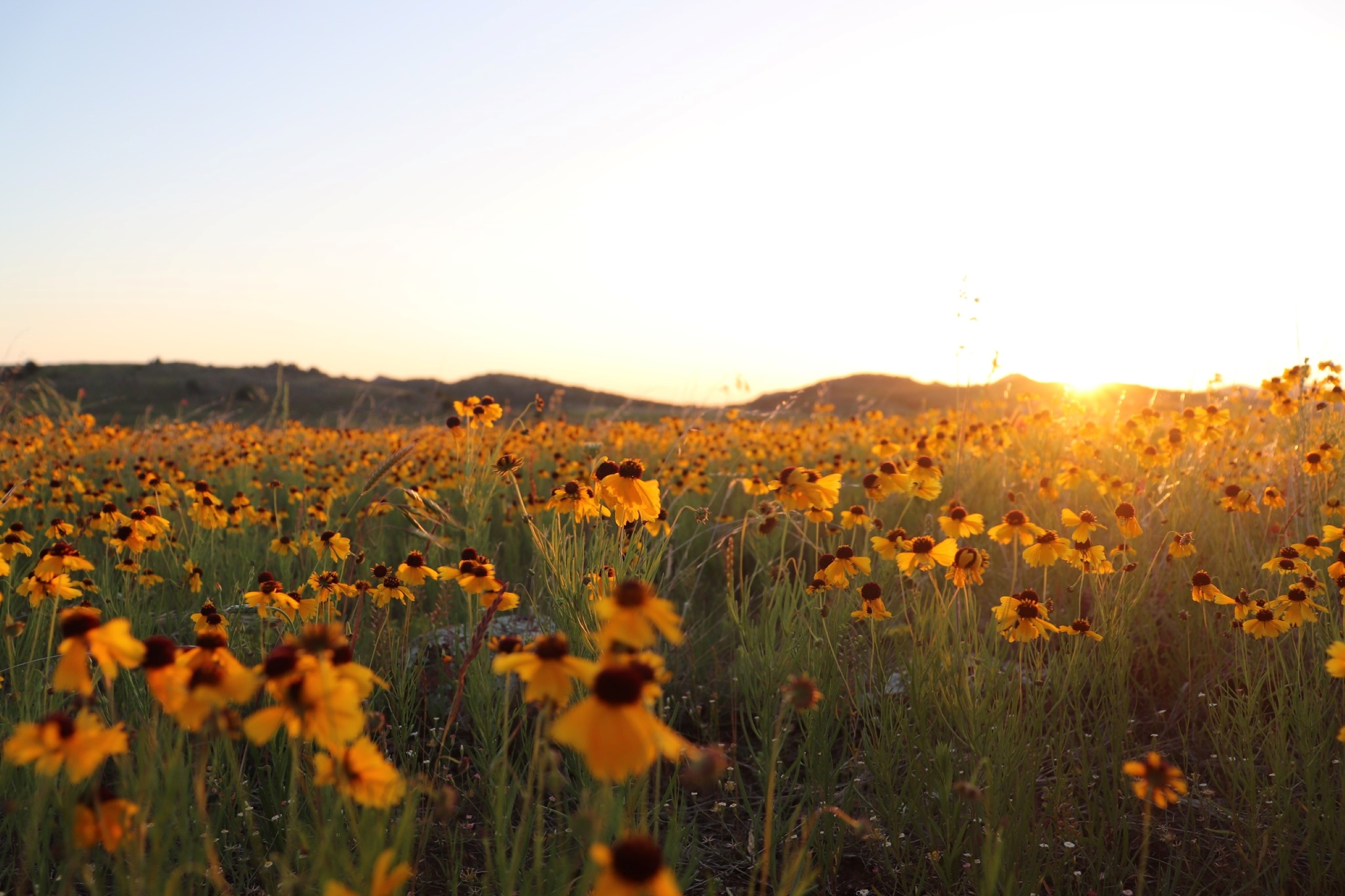 Yellow wildflowers at sunset