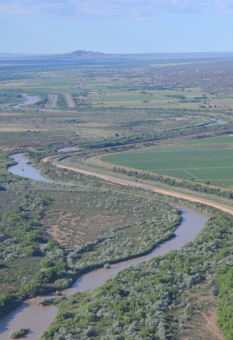 The historic Rio Grande floodplain is comprised primarily of agricultural fields. The river provides a majority of the water for crop production as well as water for municipal use. Dams, levees, and channelization limit river flows to prevent the flooding of cities, towns, and fields which has inadvertently limited habitat for many aquatic species.