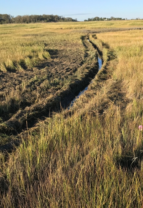 The U.S. Fish and Wildlife Service, Cape May National Wildlife Refuge, manages property along the Delaware Bay including the Reeds Beach parcel. Reeds Beach includes a roughly 100-acre tidal marsh restoration area threatened by the effects of sea level rise, severe storms, and human intervention creating a stressed environment; which has led to marsh loss and conversion to open water, affecting the plant and wildlife in the area. As part of the U.S. Fish & Wildlife Service and Cape May NWR mission, the refuge began taking action in 2014 when it was awarded Hurricane Sandy Coastal Resiliency Program funding to reduce the growing risks from threats such as coastal storms, flooding, and erosion. Through this program funding, the USFWS and a contractor studied and designed a restoration plan for the 100 acre Reeds Beach parcel It wasconcluded that to best way to restore the ecosystem was to alleviate excess water from sitting on the surface of the marsh. Less water sitting on the marsh would allow the plants to become healthier which would allow the plant roots to hold and trap more sediment allowing the marsh to grow and keep up with sea level rise. The restoration at Reeds Beach began in 2017 when10,000 feet of runnels were created over 48 acres. Runnels are shallow excavations created in a sinuous way to mimic natural creeks and streams. The runnels were created to connect low lying areas to existing creeks using a ditcher mounted on an amphibious tracked vehicle called a Marsh Master that has extremely low ground pressure. The ditcher cuts into the soil and thinly spreads the removed soil over the marsh. In the fall of 2019, Cape May NWR launched the next phase of the Reeds Beach marsh restoration, by creating more runnels in the remaining52 acres in-house with a smaller USFWS Marsh Master. As the marsh soil is very soft and muddy, it is easy for one’s foot to sink 2-3 feet into the muck; leading to difficulty for the Marsh Master. Over 1,000 feet of runnels were created, though the smaller machine was not adequate for the weight of the ditcher, so the Cape May NWR staff went back to the drawing board. In the fall of 2020, Cape May NWR was able to dig the remaining 9,931 feet of runnels with the original larger Marsh Master, completing the construction phase in the Reeds Beach marsh . This final phase would not have been possible if not for funding that was provided by Ducks Unlimited, National Fish and Wildlife Foundation (NFWF), and the Friends of Cape May NWR. In previous years, the Friends of Cape May NWR financially supported refuge interns. This financial support was used as a matching source in order to obtain a National Fish and Wildlife Foundation grant. Cape May NWR believes that this habitat restoration will improve vegetation health and provide enhanced habitat for wildlife including American black duck, saltmarsh sparrow, diamondback terrapin, and many fish and shellfish. The Reeds Beach marsh unit will be monitored through the coming years to measure the success of the restoration project by looking at vegetation changes, marsh elevation changes, water level changes, and species abundance just to name a few. To date, low lying flooded formerly non-vegetated areas adjacent to runnels have begun to vegetate once again. This project is a great education opportunity for saltmarsh health, how marshes buffer the coast and communities from storms, sea level rise and marsh restoration work.