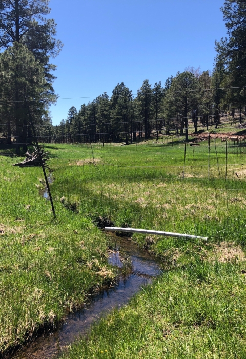 Learn more about riparian areas - streams, wetlands, and wet meadows - are a key focus of Arizona’s Four Forest Restoration Initiative (4FRI). 4FRI is a multi-stakeholder collaborative effort to improve forest health and promote natural, beneficial wildfire patterns across ponderosa pine forests on 2.4 million acres of the Kaibab, Coconino, Apache-Sitgreaves, and Tonto National Forests in Arizona. These forests provide important ecosystem services to surrounding communities, including food and wood resources, clean air and water, and recreational opportunities. These public lands also harbor invaluable water resources, cultural significance, and rich biodiversity. Historical exclusion of beneficial fire and unsustainable land uses contributed to dense, unhealthy forest conditions in this region. These impacts are compounded by climate change, which is intensifying droughts and flash floods, and amplifying the risk of unnaturally severe wildfires.