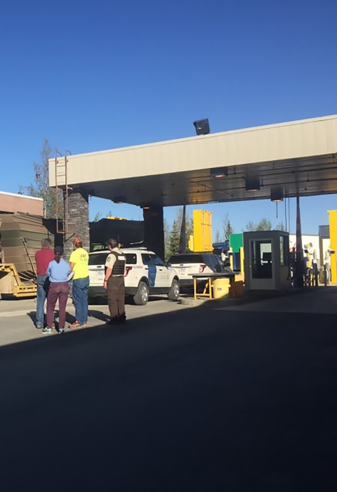 Invasive species prevention occurs at critical access points into the U.S., Alaska, and National Wildlife Refuges in Alaska. We're collaborating with federal and state agencies to manage a watercraft inspection station at the U.S.-Canada Border near Northway, Alaska. As watercraft come across the border, staff ask them to stop and answer a series of questions which help screen watercraft for invasive species invasive species