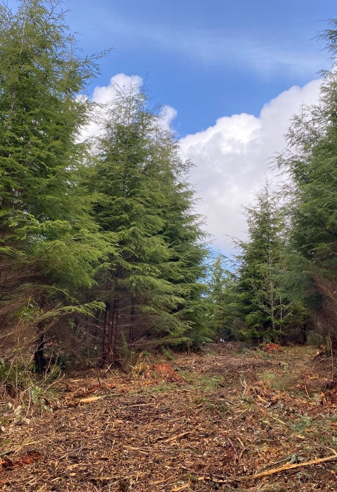 The partnership includes sharing staff and equipment to do on-the-ground work that benefits wildlife on a landscape level. TNC utilizes their forestry expertise to help manage and restore Refuge forests. The Refuge, through the Partners for Fish and Wildlife Program, utilizes their equipment, skilled operators, and leverages funding opportunities to further restoration of Ellsworth Creek. Restoration actions include the decommissioning of roads and thinning of overgrown areas. Retiring unnecessary roads reduces the risk of road failure, restores natural stream hydrology, and reduces runoff into streams, rivers, and Willapa bay. Thinning overplanted areas and commercial harvest of select trees improves growing conditions for remaining trees by reducing competition for sunlight, water, and soil nutrients. Thinning also promotes the germination and growth of a diversity of shrubs and trees that fill in as understory which is important habitat for wildlife. And lastly, it creates the much-needed canopy openings required for marbled murrelets to fly in from the ocean to reach their nest among the towering giant trees.