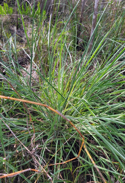 Florida pineland crabgrass is also known as Everglades grass or twospike crabgrass, and only occurs in the Everglades in Miami-Dade and Monroe counties. This blue-green perennial clumpgrass grows in pine rocklands, marl prairie, cypress habitat, and transitional habitats between them. It reaches 3 feet tall in clumps 3 feet wide with densely hairy leaves up to 5 inches long.