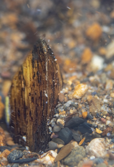 Many freshwater mussels spend the majority of their life sedentary and filter feeding on the bottom of rivers and streams. Sometimes they will bury into the sediment, only revealing a small portion of their aperture, which is used for gas exchange and filter feeding.