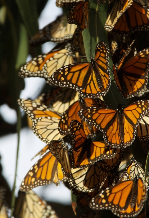With its iconic orange and black markings, the monarch butterfly is one of the most recognizable species in North America. Monarchs are particularly remarkable because they migrate each year, flying from as far as Canada and across the United States to congregate at a few forested overwintering sites in the mountains of central Mexico and coastal California. These sites are an amazing phenomenon: thousands of monarchs cluster in the trees in California, and millions of monarchs drape large swathes of forest in Mexico.