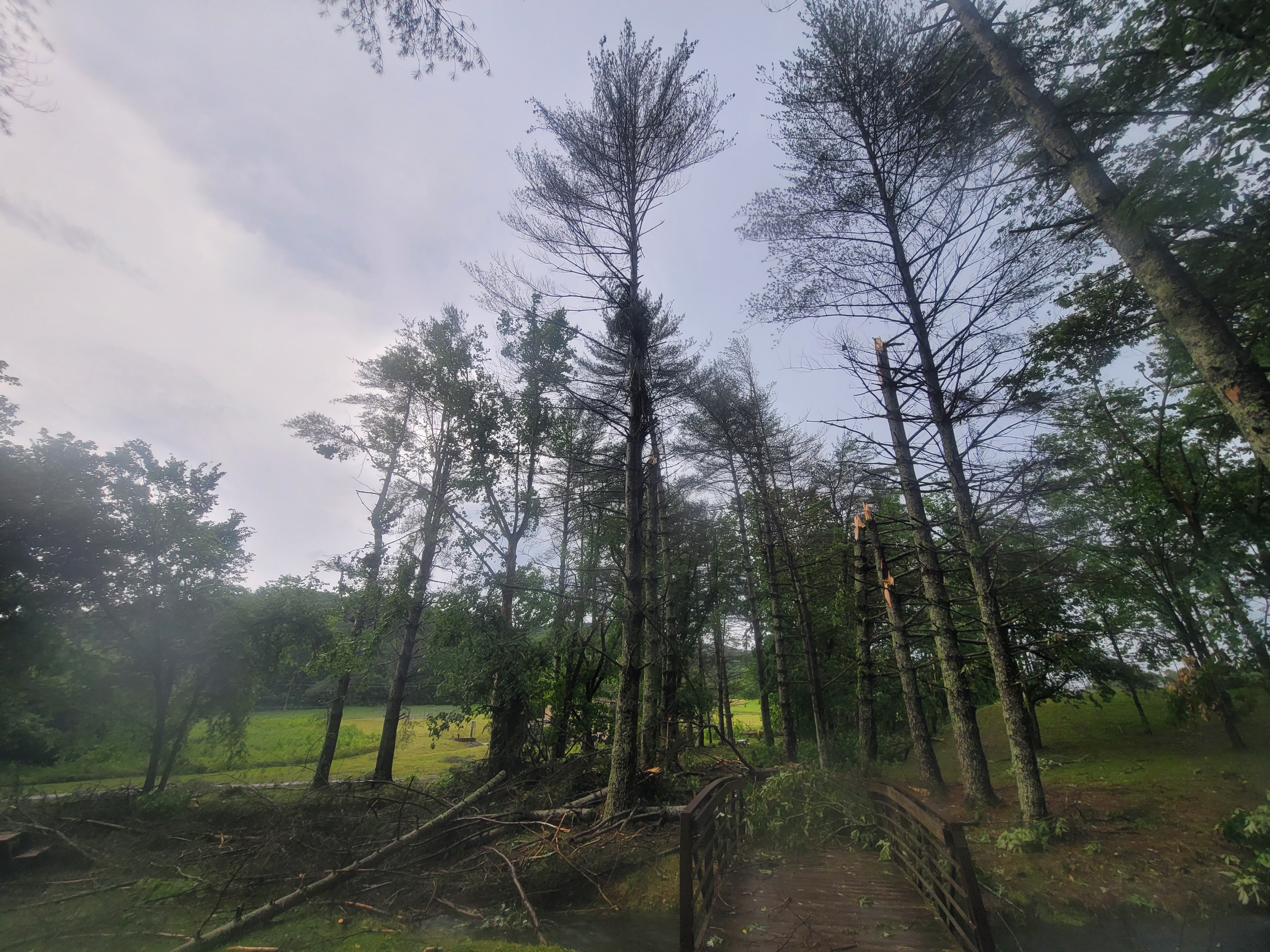 The windstorm tore through the lower part of the hatchery, through the fishing creek and down through the trails