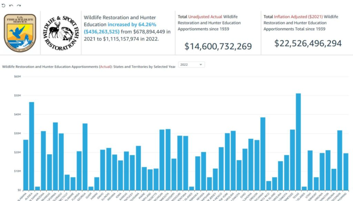 The Wildlife and Sport Fish Restoration Program (WSFR) has launched new data dashboards to give partners and the public access to hunting and fishing license data and apportionment figures, with decades of information.
