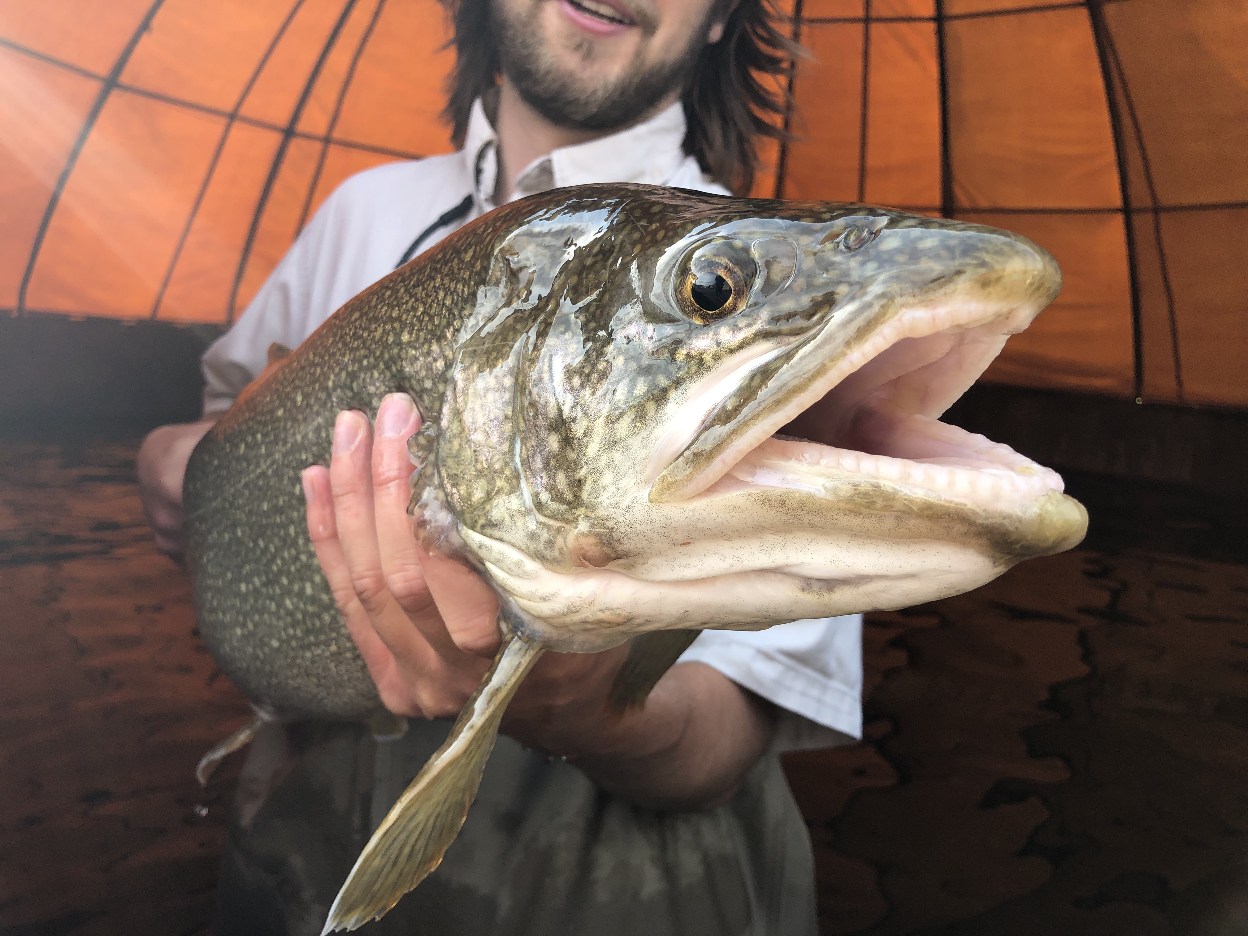 Biological Science Technician Paul Boynton holding an adult Lake Trout reared at the White River National Fish Hatchery in Vermont.