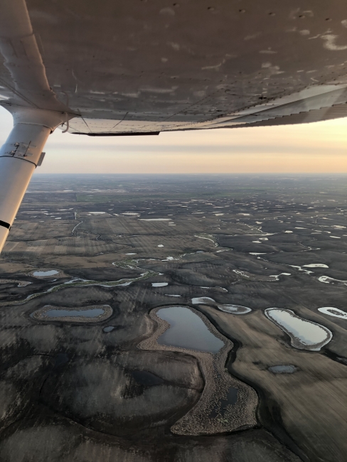 This aerial photo showing wetlands across the landscape was taken during the 2023 Waterfowl Breeding Population and Habitat Surveys.