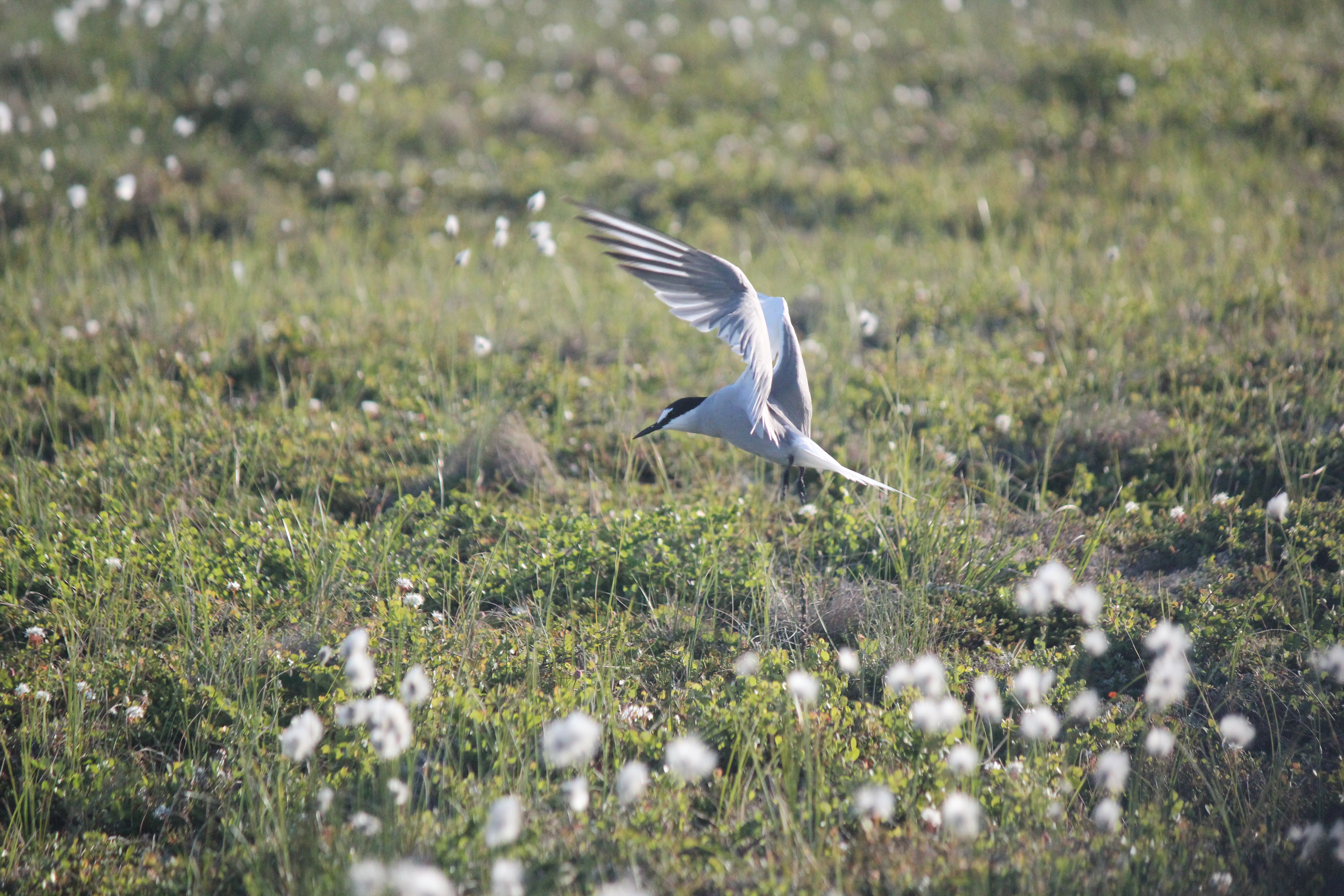 Aleutian tern landing on nest near Naknek, Alaska.