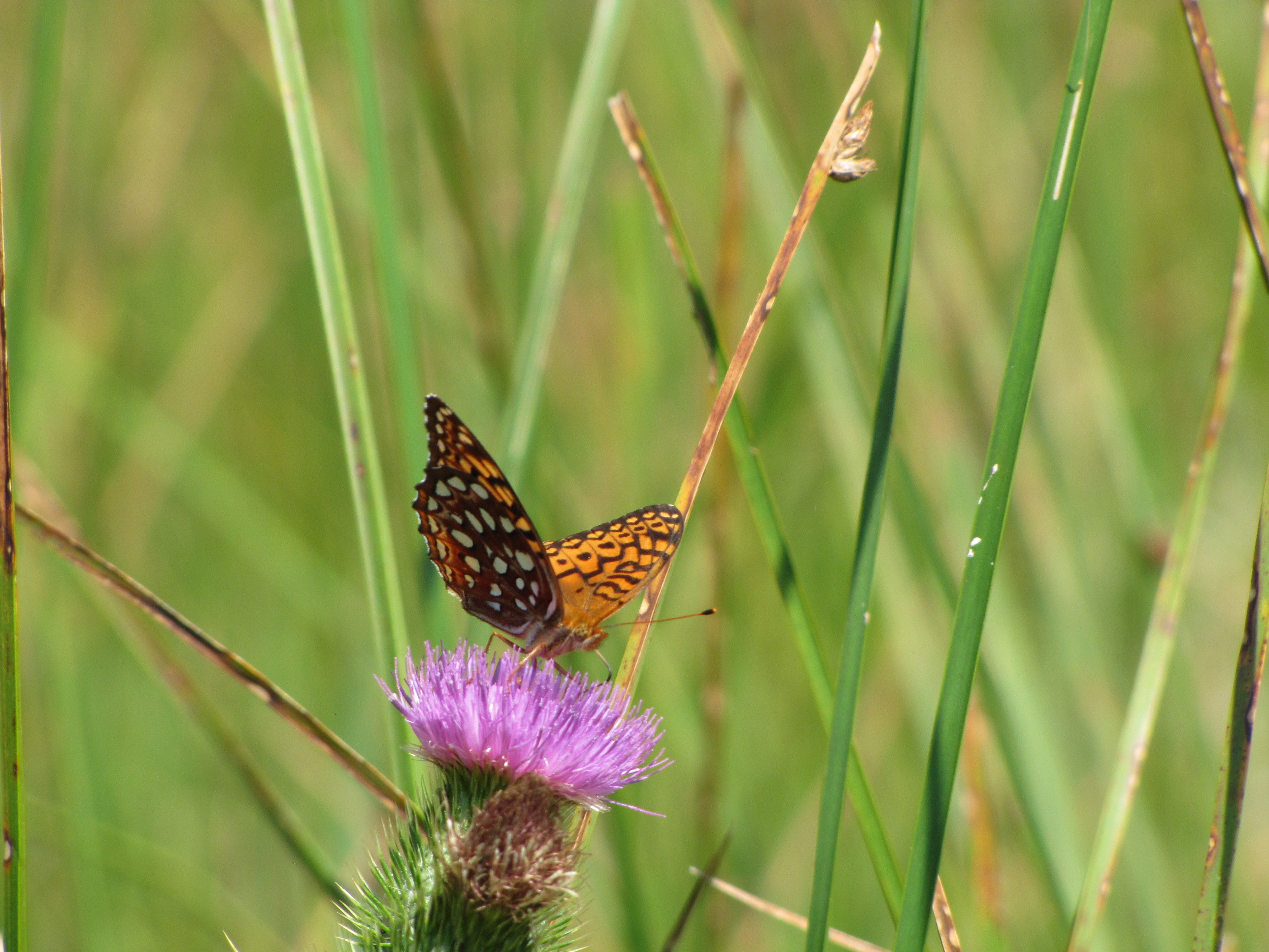 An Aphrodite butterfly visits a thistle at Harbor Island National Wildlife Refuge in Michigan.