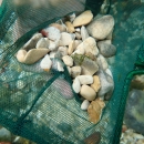 Image of an aquarium net with an endangered Peck’s cave amphipod amongst gravel at Comal Springs by Amelia Hunter/USFWS.