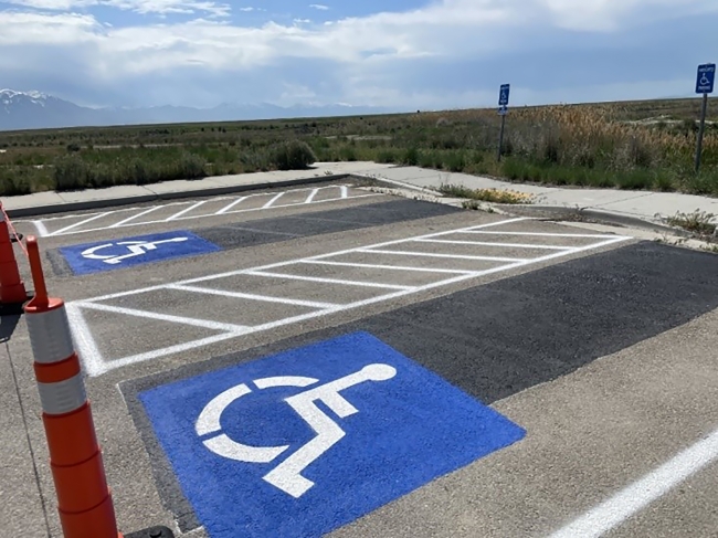 Accessible parking striping at Bear River Migratory Bird Refuge.