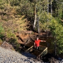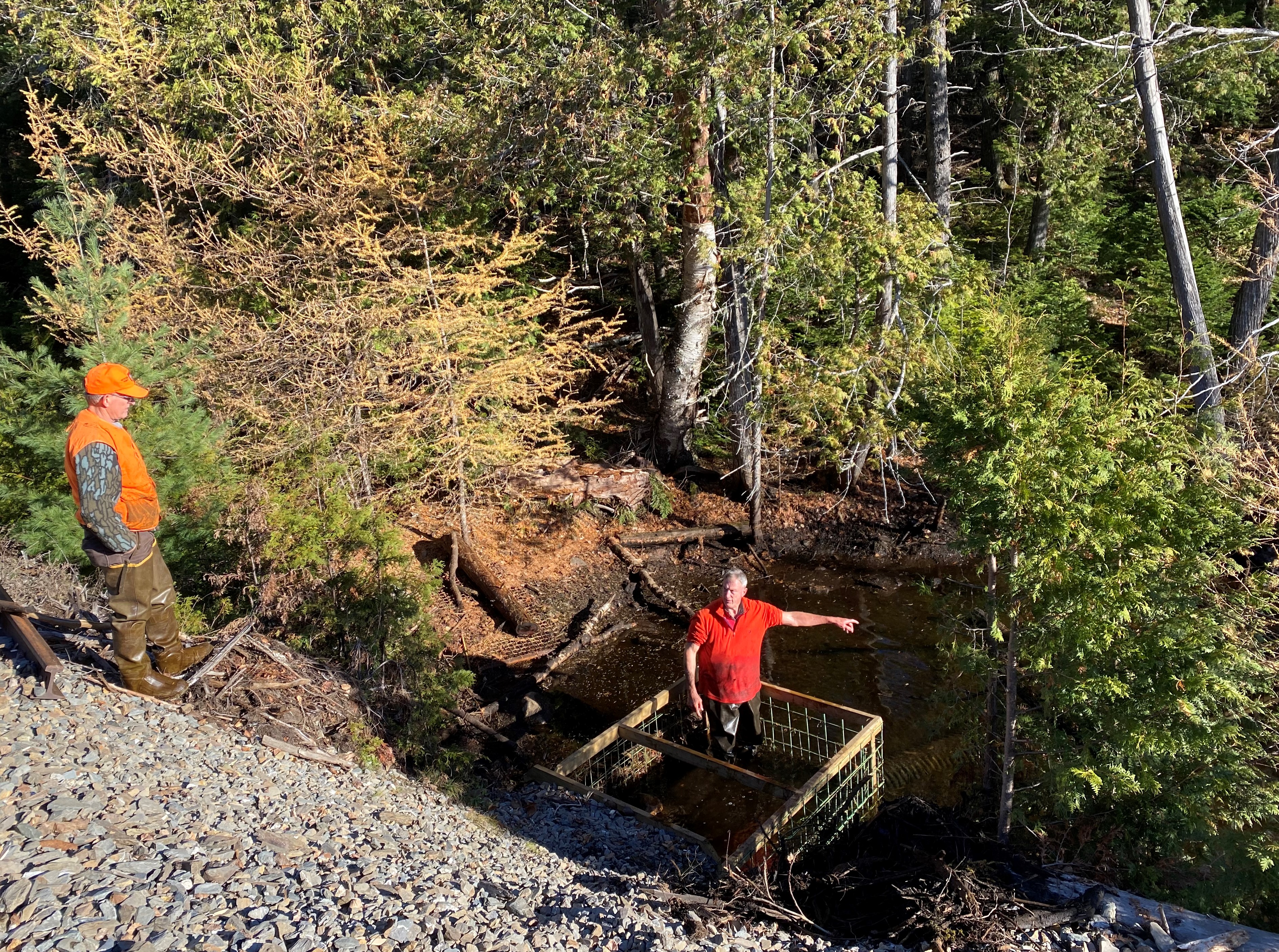 Maine Field Office staff assist with the installation of a beaver deceiver in Crystal Bog, Maine.