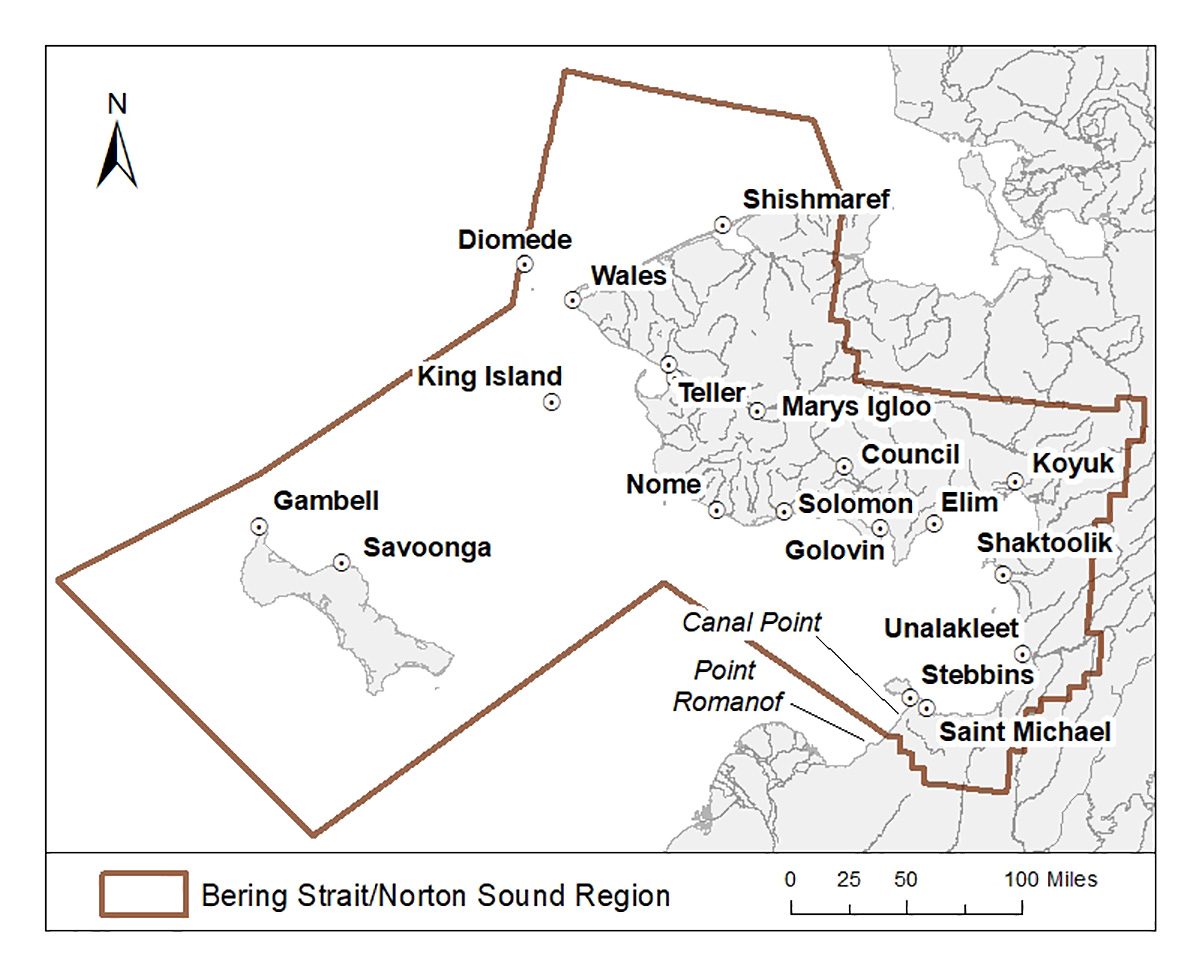 Map of Bering Strait/Norton Sound Region boundaries for the migratory bird spring/summer subsistence harvest.