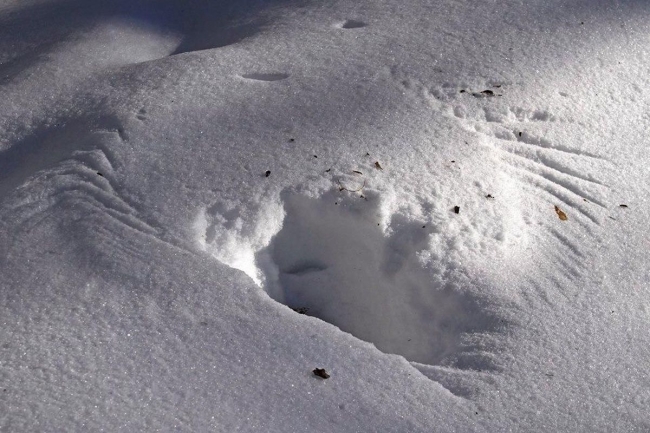 A large-winged bird leaves its impression in the snow at Tamarac National Wildlife Refuge in Minnesota