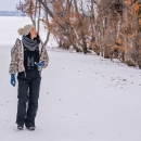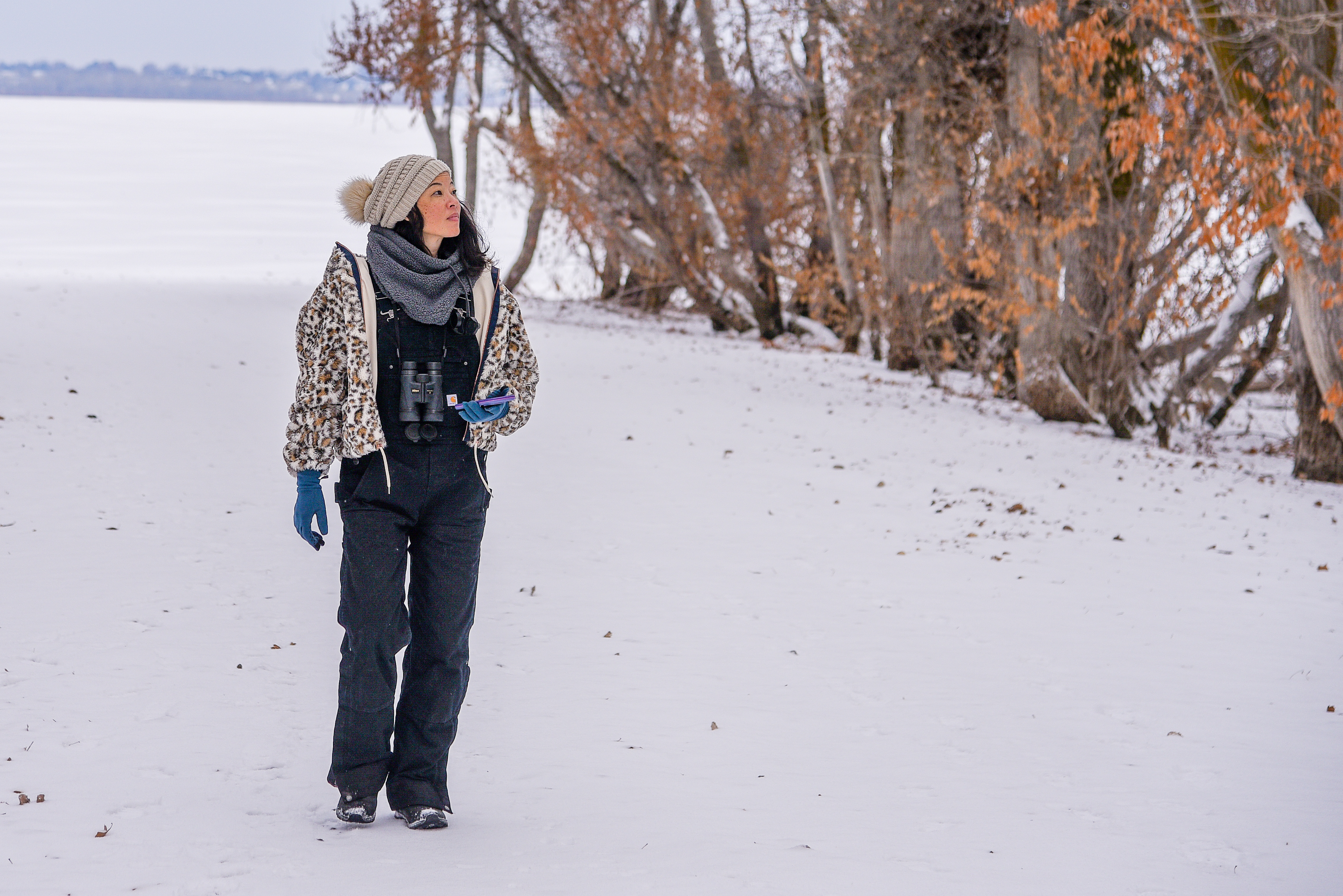 Lena Chang listens and looks for a medley of songbirds at Deer Flat National Wildlife Refuge.