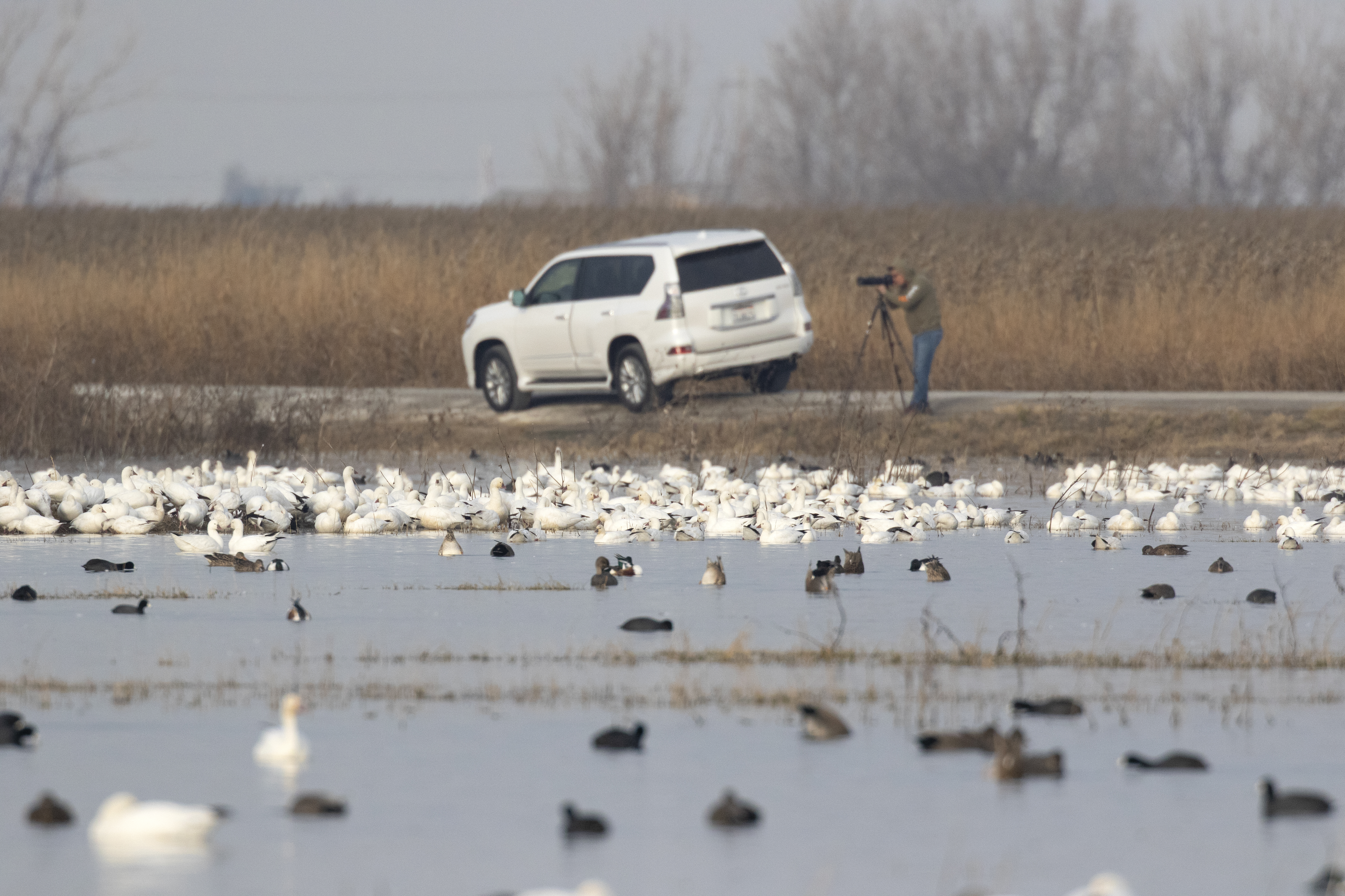 A birdwatcher on the tour route at the Merced National Wildlife Refuge. Over 300 species of birds call the refuge home. © Gary R. Zahm