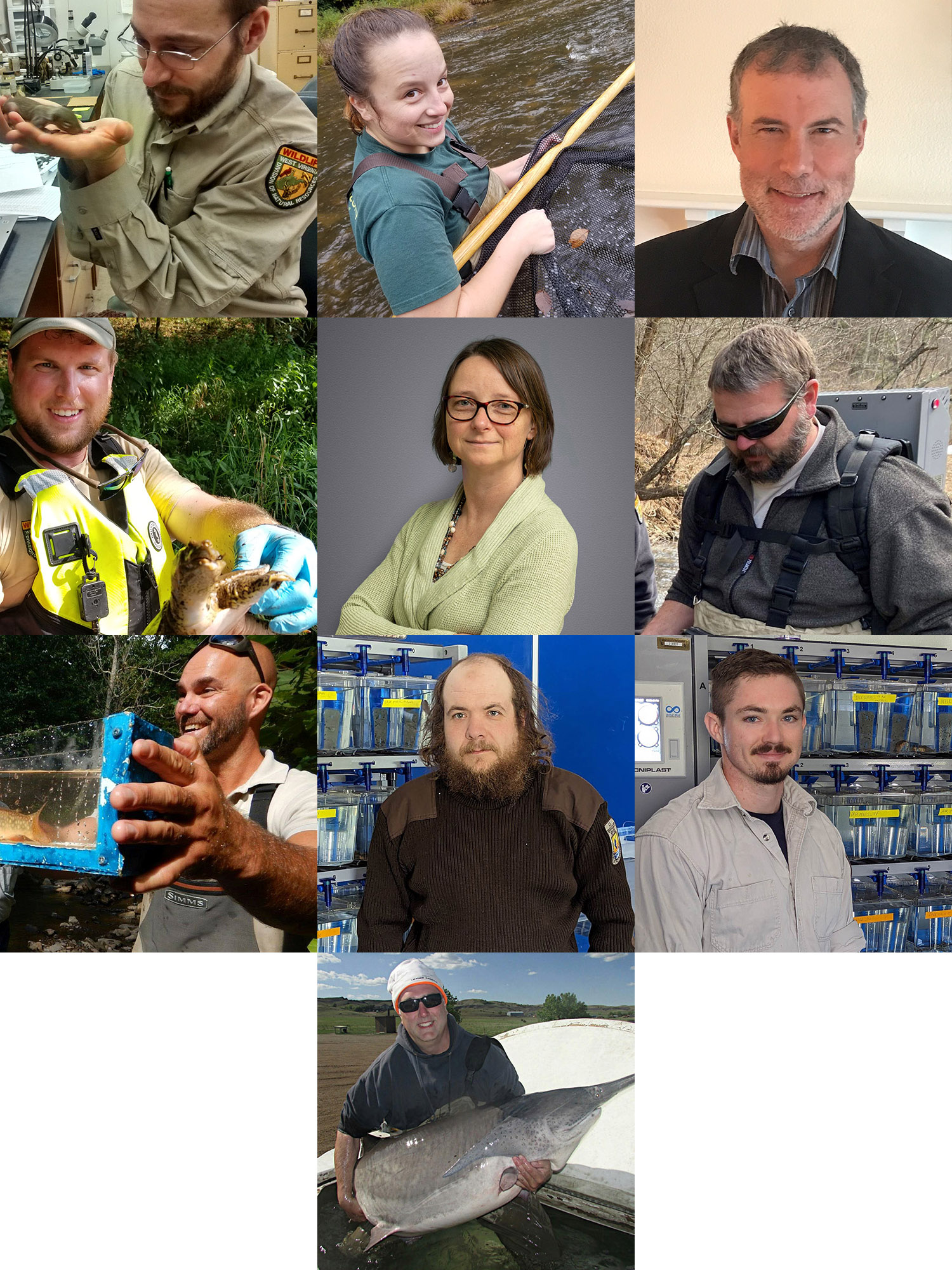 Members of the Candy Darter Conservation Team. From left to right, top to bottom: Isacc Gibson, Brin Kessinger, Stuart Welsh, Nathan Owens, Amy Welsh, Jason Morgan, Chad Landress, Andrew Phipps, John Moore, and Craig Bockholt.