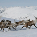 A small group of caribou traverse the snowy hills of northwest Alaska. Photo: Kyle Joly/NPS.