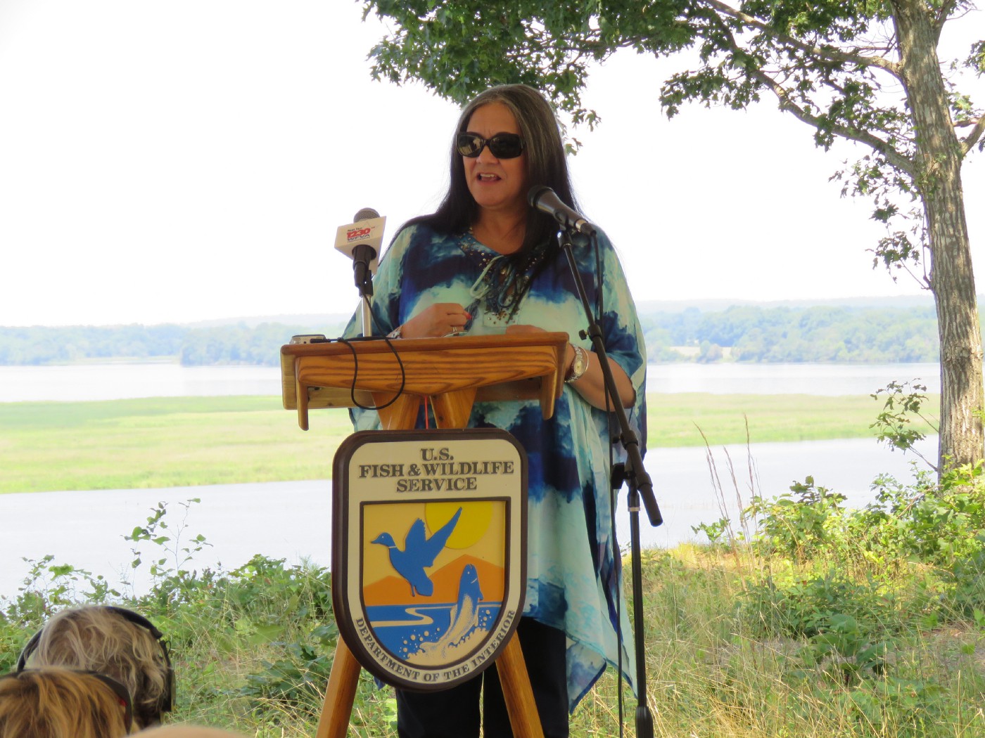 Chief Anne Richardson speaks at the Fones Cliffs dedication in 2019.