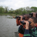 Children use binoculars to view birds at John Heinz National Wildlife Refuge at Tinicum.