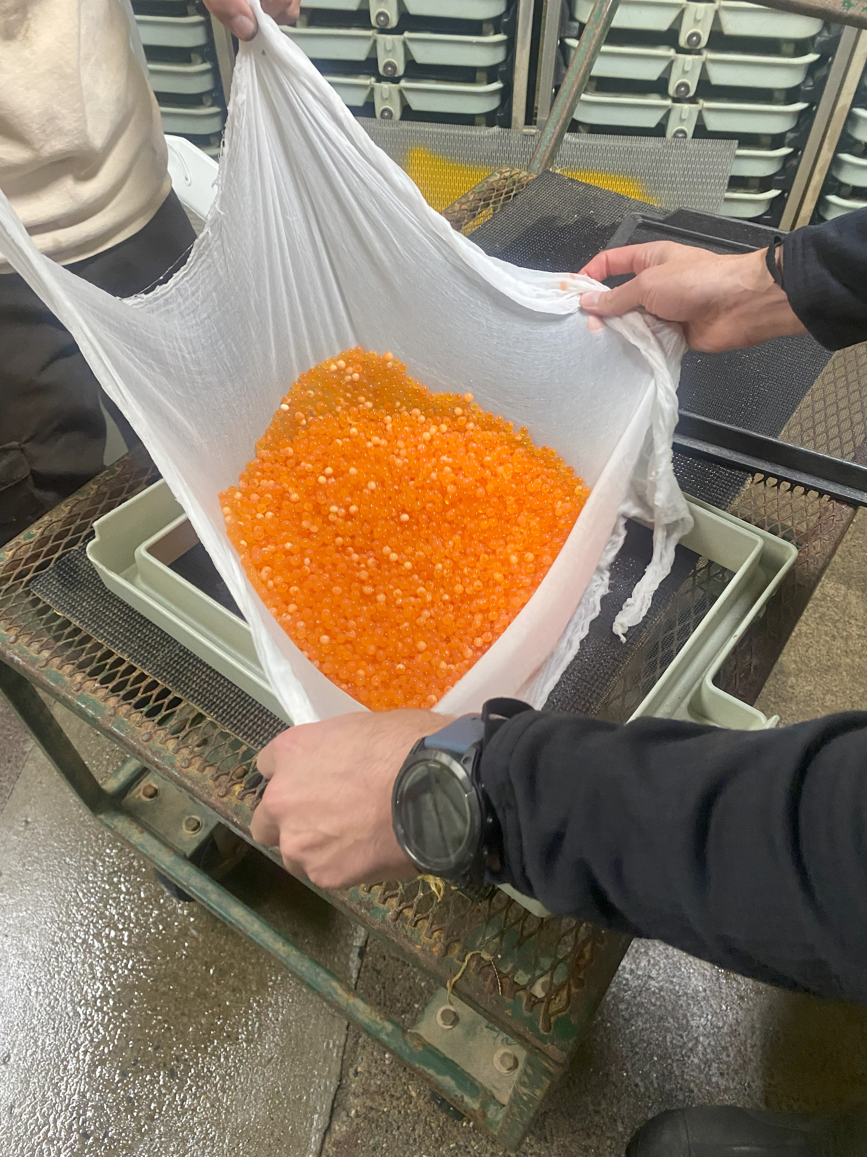 Eggs collected, for Coleman NFH, at Nimbus Hatchery, Feather River Hatchery and Mokelumne River Hatchery were placed in damp cheesecloth after fertilization and then into coolers for transport. Once the eggs arrived at the hatchery, the eggs were poured out of the cheesecloth and into incubation trays where they remain until they hatch.