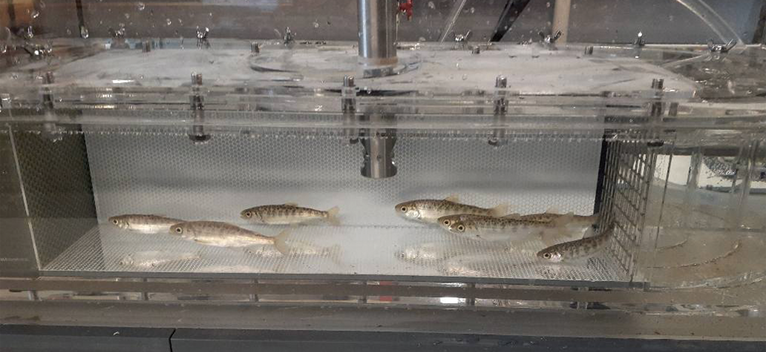 Fish health biologists use tanks, called "swim chambers" for physiological research projects.
